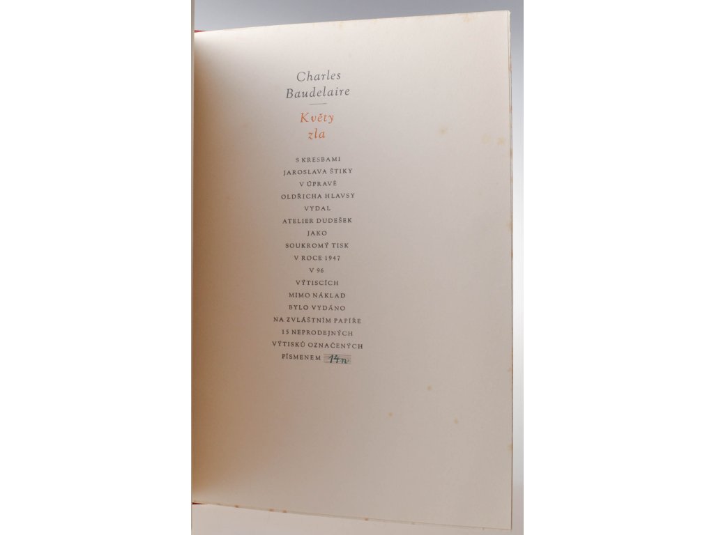 | Stav | velmi dobrý, skvrny na ořízce |
